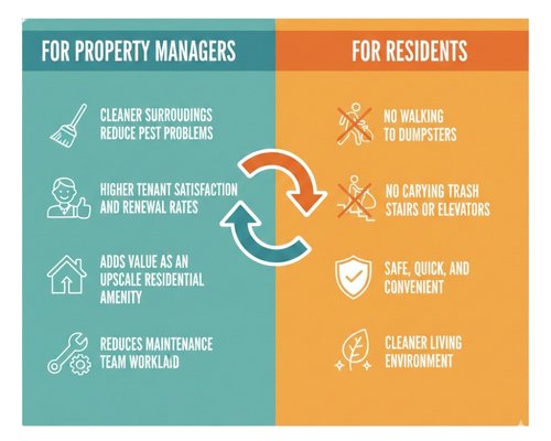 No more overflowing dumpsters, loose trash in hallways, or residents dragging waste across the property.